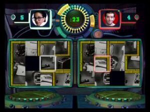 In the typical tradition of these games, the various minigames you’ll encounter are simple brainteasers of various sorts. This time around, however, you’re competing directly with another player to try and accomplish a goal or score more points than they do, first. This simple addition does a lot to add to the excitement of the proceedings, and it makes for a much more interesting game overall. Previous games tended to feel more like dressed up IQ tests, while here, it’s more of an actual competition. Unfortunately, the other two players will still have to sit and watch, but it’s a very nice step regardless. The various minigames are generally stuff that have been seen before – matching more pairs of pictures of sound before your opponent, answering trivia questions – almost all of which are framed around American culture and history, and unscrambling motion pictures before your opponent can first. The only really new minigame is Troika, in which you’re tasked with selecting three sets of icons, with points being scored by having them match by color, number, and shape.