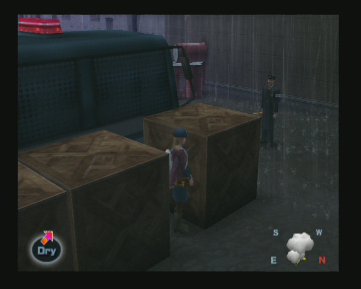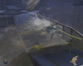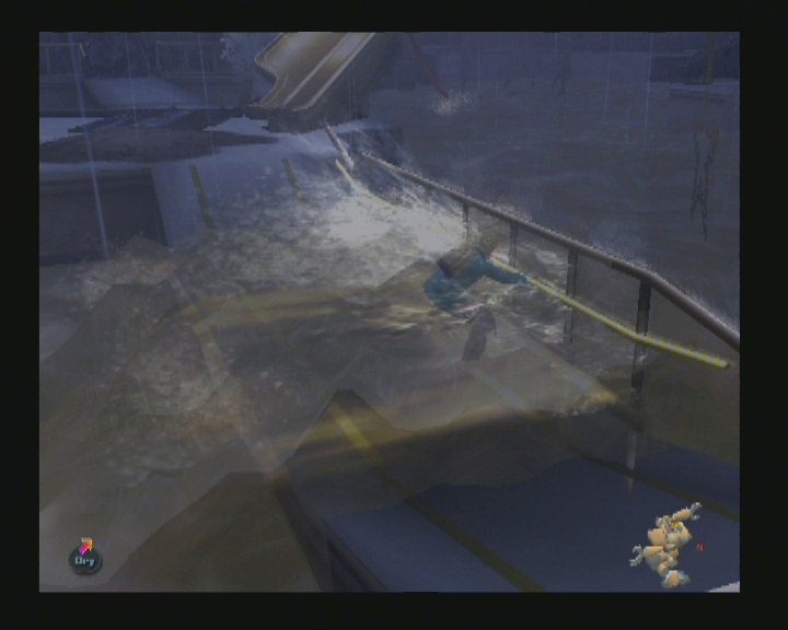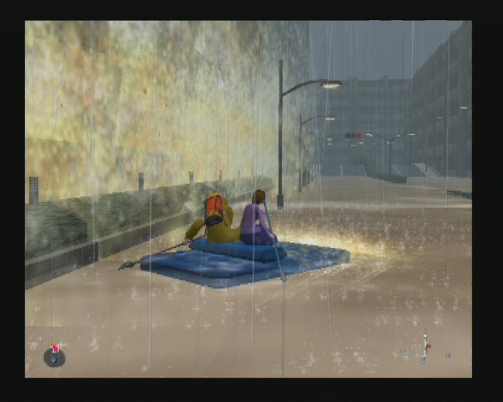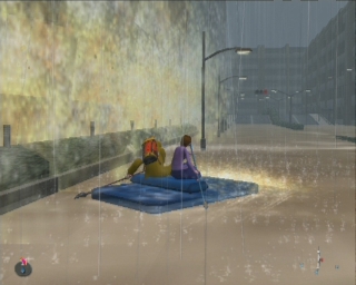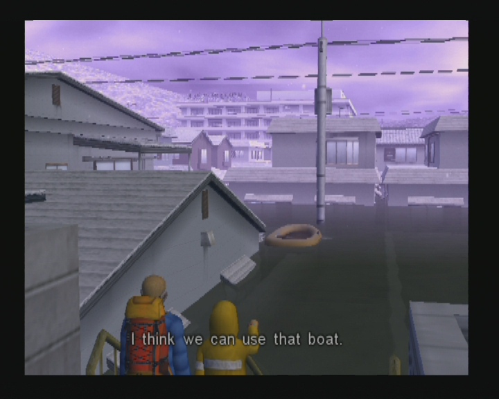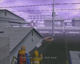 There are also quite a few action segments, where you need to run from an impending hazard, simple but fun stealth sections (which work well), in addition to some fantastic vehicles. Whereas before you were limited to a bicycle and very short rafting sequence, there are quite a few vehicles with some serious usage in Raw Danger. The first you'll encounter is a jetski for Joshua, which allows him to navigate the flooded roads while escaping the city. With this you can also jump over obstacles by speeding on to overturned road signs. As you reach buildings en route you can get off to search for supplies, a bit like that section in Half Life 2. It's not an especially long sequence, but it's a lot of fun. Later you also get to drive Isaac's cab around the city, and off-road when heading for Cascade Dam. Ironically, being a Japanese game, you have to drive on the left side of the road - despite being set in America, where they drive on the right side of the road. There's also several boats you ride, either rowing along or with a motor. At one point it's on the back of a floating air mattress! Control for most of these is tight and well implemented, though the rowing boat can be difficult to steer as you'd expect.
