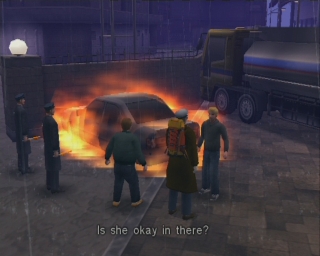 The main draw though, as mentioned earlier, is the story choices. There's some fantastic multi-choice situations throughout. In one instance, controlling Amber, you have the choice of quietly sneaking through a hole in a broken wall, which will knock over a fuel pipe and result in a massive explosion, affecting later playthroughs with other characters. Alternatively, if you've found the police uniform, you can play dress-up and simply ask the cop at the front gate to let you out. Moments like these happen at regular interval, and it does a tremendous job of making you feel involved in the narrative. Besides the main story branches, there are dozens and dozens of extra dialogue scenes, which are totally superfluous to the main part of the game, but are fun to discover (when controlling Isaac in his car, be sure to explore thoroughly).
