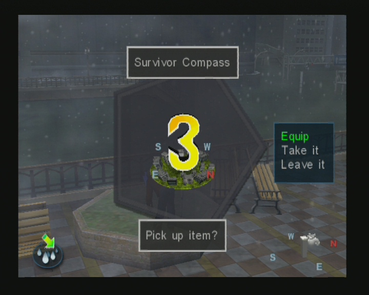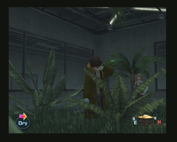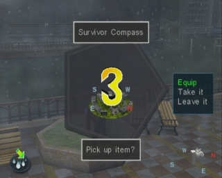Another key aspect to gameplay is clothing collection and item creation (compass collection also makes a return, along with references to other Irem games). Whereas before there were only a few items of mostly useless clothing, and they only supplemented your standard day-clothes, now there are 90 items of clothing to discover! These are encompass overcoats, tops, pants/skirts, gloves, shoes, hats, facial items like earmuffs or glasses, and backpacks. Several have specific traits, such as keeping your character drier or warmer than other items. Many are there purely for cosmetic purposes, and it's a lot of fun making your character look as silly as possible during what is a rather sombre situation. Clothing takes up inventory space though, so if you run out of space it's worth disassembling them into "burnable trash". Get three lots and you can combine them to make a bonfire. Other items you can combine allow you to create a makeshift raincoat from plastic trashbags and tape, cardboard shelters, and even rowing oars from broom handles and pans. Some are used for your own benefit while others given to NPCs. There's a lot of depth to the system, and it's required a lot more than previously, even though there's so many items that you'll never find yourself in a position of shortage.