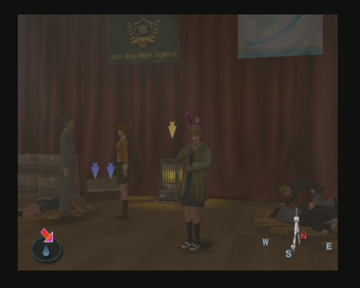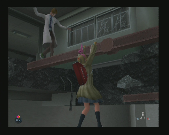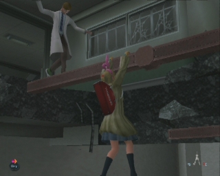 The series' recurring character, Kelly appeared in Disaster Report and goes on to show up in Zettai Zetsumei Toshi 3. She hasn't changed much since last time. On all three occasions she's trapped and needs rescuing by the player. A kind-hearted teacher at Del Ray High School she's trapped under a piano needs saving. Later she helps Paige escape, while recounting events from the previous game. You're also given the chance to rub her legs with slippery oil.