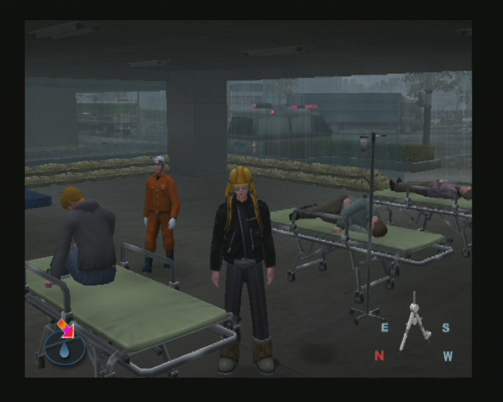 The starting character, who looks quite a bit like Keith from Disaster Report, what with his bleached hair. Although a college student he's earning extra money as a waiter at the Geo City Inaugural Banquet, along with Stephanie McMurrough. When the flooding hits he manages to escape with her, and later can choose to either evacuate via helicopter, or help her find her stepmother, which opens up a whole new section of game. Like in the previous game you can choose to be a complete ass if you want to. Again and again.
