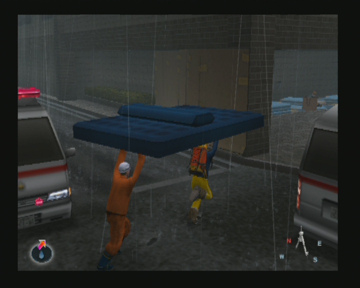 The sequel, localised as Raw Danger! in the west, is bigger, better and far more ambitious than the original. Instead of an earthquake, the disaster centres around a newly constructed city on the banks of the Hudson river, being flooded during heavy rains and in danger of being swept away by a nearby levy. Rather than HP, stamina and water intake, you need to be aware of your body temperature as you try to keep characters dry. All of the mechanics found in Disaster Report, such as clothing, vehicles and item combination, have been improved and expanded. Also, instead of one character with a story branch in the middle which later joins back up, there are five main characters (plus one secret character), each with their own unique but overlapping chapter. There's even some recurring characters! The chapters build upon each other in layers, so actions done earlier (such as unlocking a door) carry through to affect other characters. In so many ways, it's the perfect sequel. It retains the feel and atmosphere of the original, while addressing criticisms and shortcomings. For those annoyed by the lack of camera control in Disaster Report, you now have total freedom of control with the right analogue stick, able to pan around characters at will.