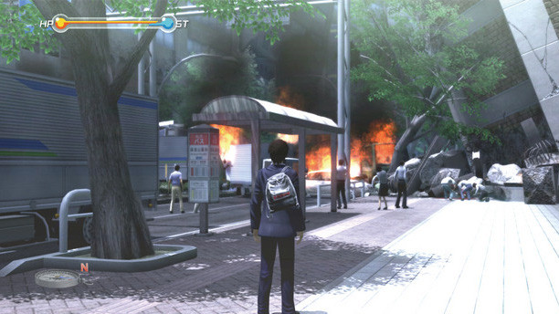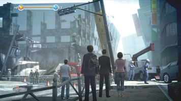 "One result of being the city for so long is that you'd get to visit the same area multiple times. The game would have allowed you to visit some areas two or three times, and you'd get to see the city begin to recover. The game showed the aftermath of the disaster, from workers beginning to clear waste and cars from buildings and streets, to people taking shelter in evacuation areas at night. There were people returning to their destroyed homes to recover their family possessions, and a girl searching for her parents and brother. There was even an old man who'd started up a makeshift udon stand on road."