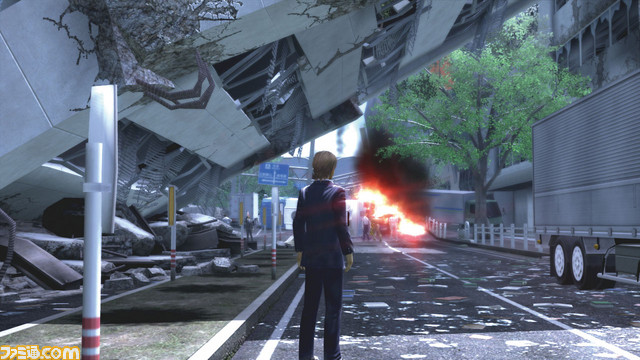 "This latest entry in the series was being made with a different mindset from past Disaster Report games. Past titles were about the first one-to-three days following a disaster. DR4 was to be about living in a city for a week following a disaster. The main character was to meet with a variety of people and partner with them -- another change from past titles, which put players with a fixed partner for the course of the game. The city in DR4 was full of people. One map had sixty or so in the vicinity of an intersection. The development staff was in the final phases of development, working on speeding up the code to handle the load, when the game was cancelled."