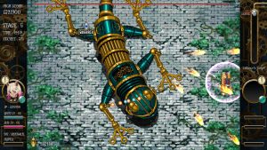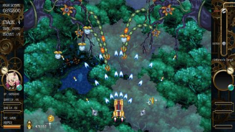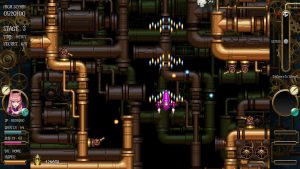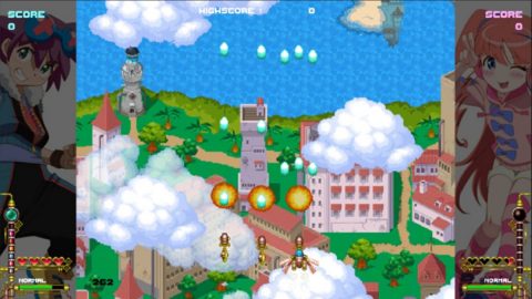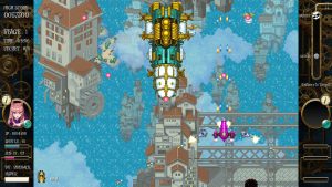 The lively characters were designed by Shuujirou “Shuzilow.HA” Hamakawa (the artist for Detana TwinBee!!, plus some of the Parodius games), with the music was provided by Miki “MIKI-CHANG” Higashino (Gradius), Junya Nakano, and Yuji Takenouchi (both contributing to X-Men and Mystic Warriors). The background artwork and the bosses are also clearly inspired by DetanaI! TwinBee, complete with flying islands and steampunk machinery. The game itself was actually developed by Hidekuni Sasaki of PiXEL, who specialize in modern retro games, particularly shooters like Horgihugh and Xelan Force.