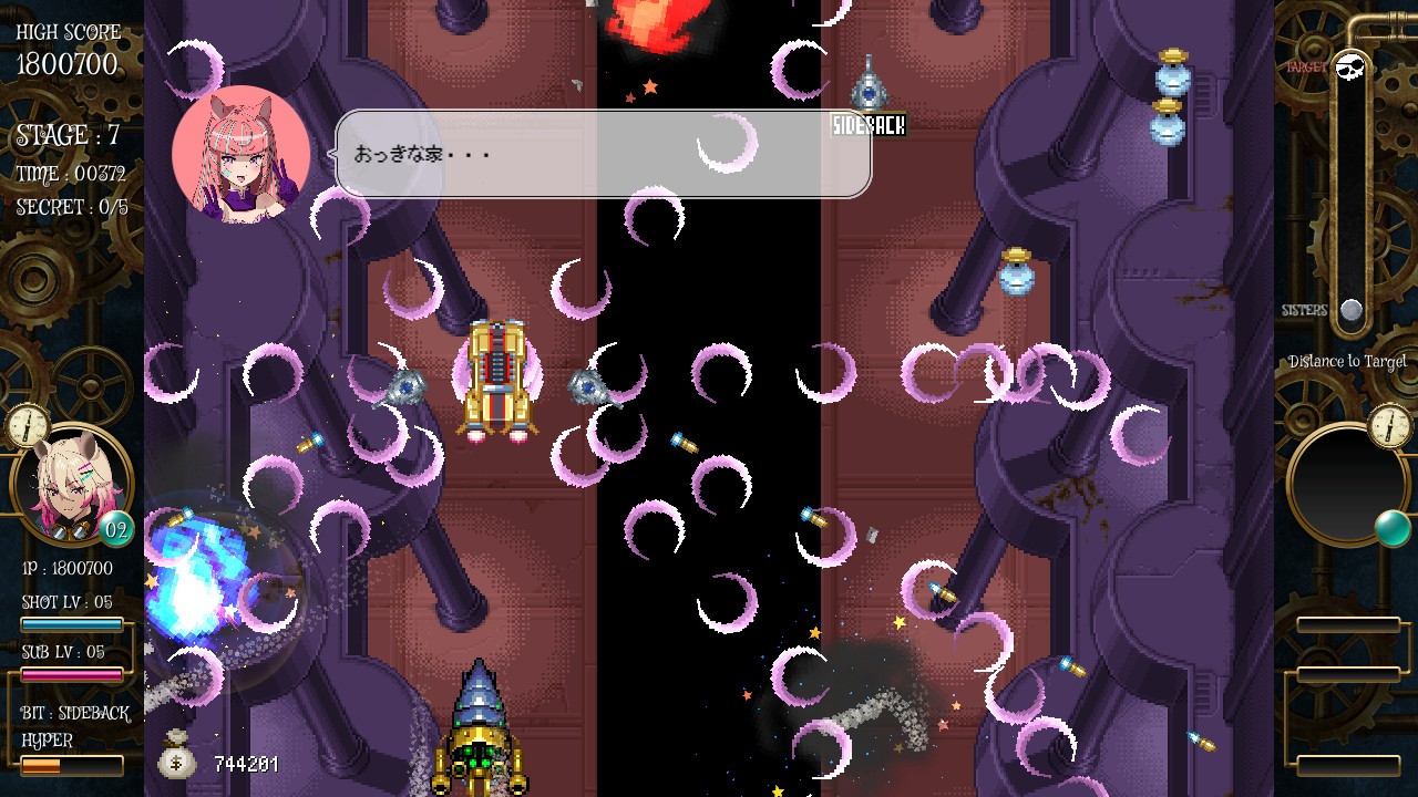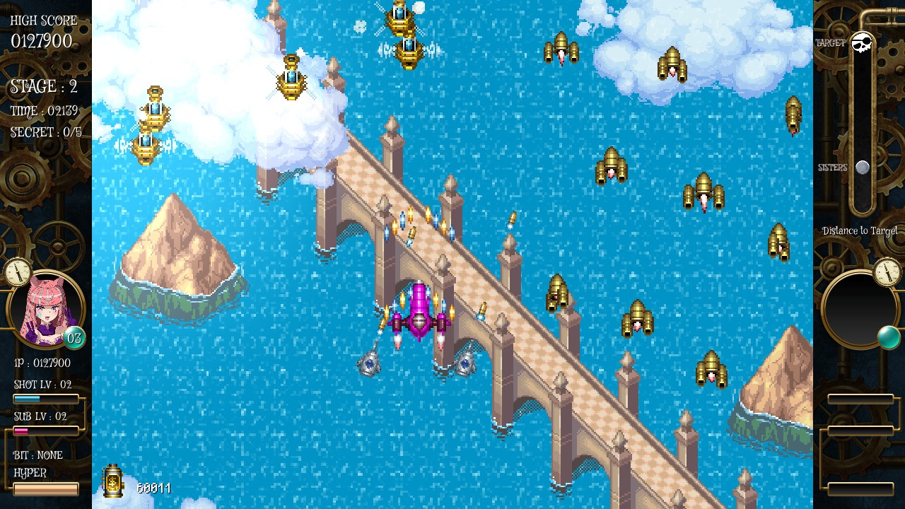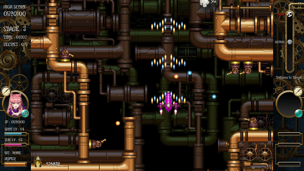 Bounty Sisters had an extremely turbulent development history. It first began life as Steam Pilots, conceptualized by ex-Konami composer Motoaki Furukawa. It was successfully crowdfunded in 2019 and development handled by PiXEL. However, some money went missing and there a legal dispute between the two. Development stopped for a few years before PiXEL rebooted the project as Bounty Sisters, this time without Furukawa’s involvement. Shuzilow.HA provided artwork for both versions, though the characters are different between the two incarnations. Otherwise, the public screenshots of Steam Pilots show it to be otherwise pretty similar looking to the released game. So even though Bounty Sisters doesn’t quite have the production values of the arcade TwinBee games, it’s understandable given the circumstances. Plus, despite hiring all of the ex-Konami people, most of the actual game was developed by just a single person, so it’s a miracle that the game still turned out as well as it did.