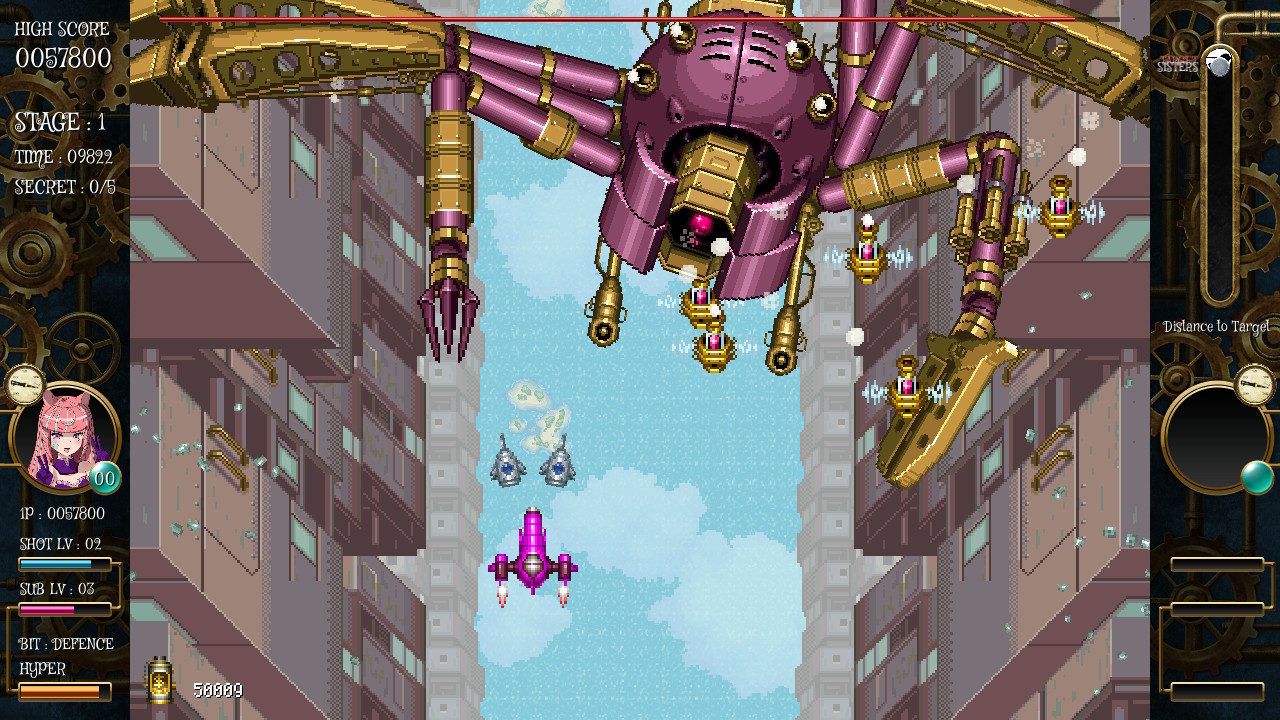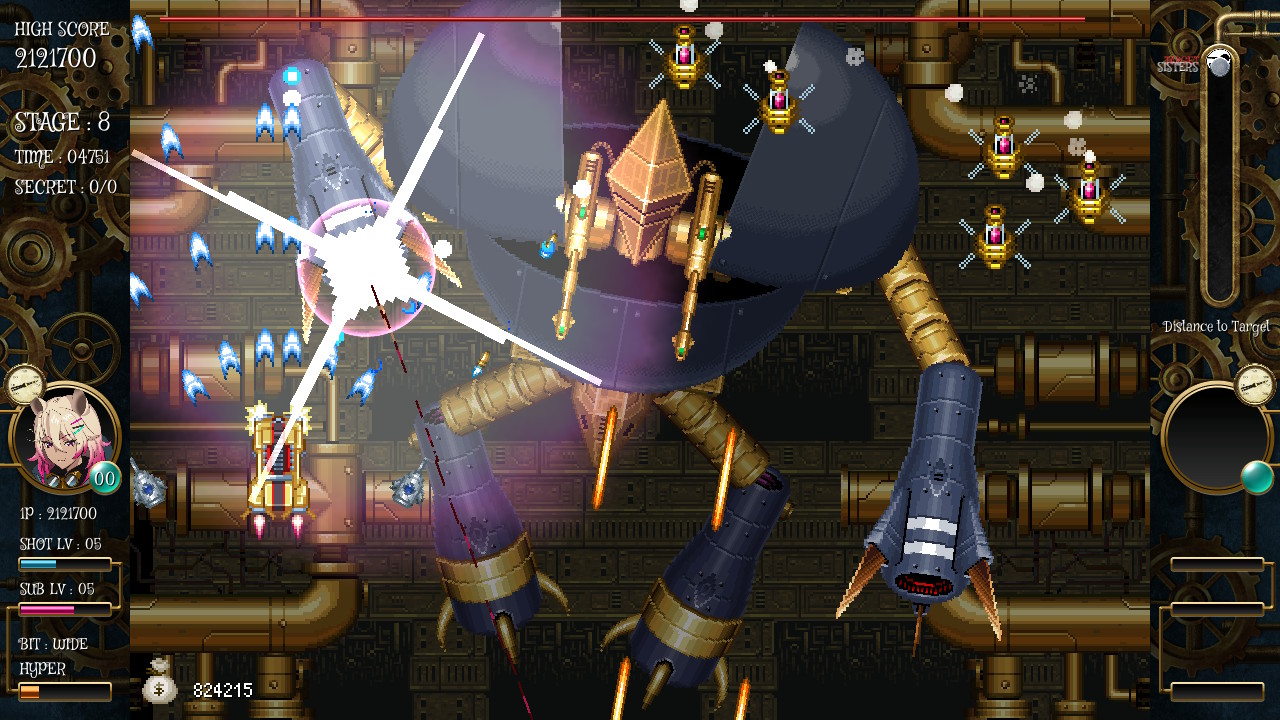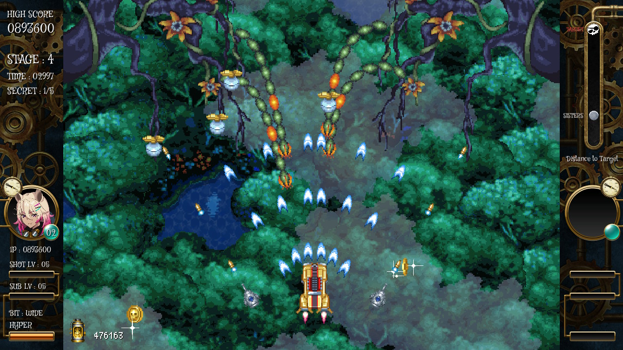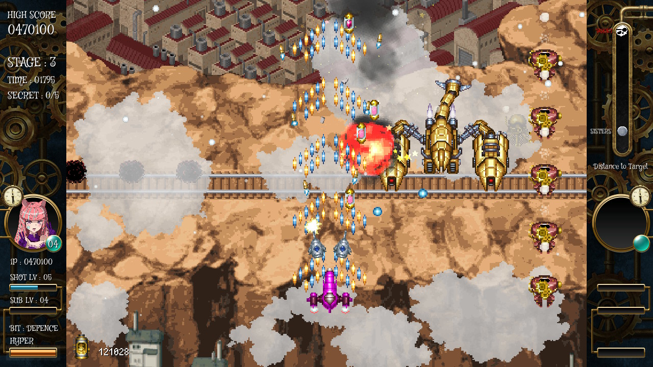 Bounty Sisters had an extremely turbulent development history. It first began life as Steam Pilots, conceptualized by ex-Konami composer Motoaki Furukawa. It was successfully crowdfunded in 2019 and development handled by PiXEL. However, some money went missing and there a legal dispute between the two. Development stopped for a few years before PiXEL rebooted the project as Bounty Sisters, this time without Furukawa’s involvement. Shuzilow.HA provided artwork for both versions, though the characters are different between the two incarnations. Otherwise, the public screenshots of Steam Pilots show it to be otherwise pretty similar looking to the released game. So even though Bounty Sisters doesn’t quite have the production values of the arcade TwinBee games, it’s understandable given the circumstances. Plus, despite hiring all of the ex-Konami people, most of the actual game was developed by just a single person, so it’s a miracle that the game still turned out as well as it did.