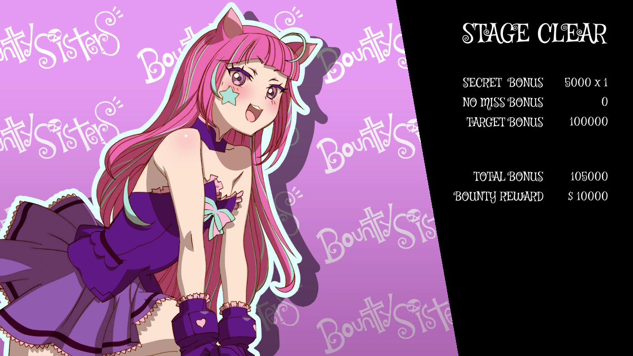 Though it doesn’t quite the highs of the games it’s emulating, Bounty Sisters still has a decent classic shoot-em-up foundation, and it’s a pleasant nostalgia trip. The soundtrack hits all of the right notes too, particularly the distinctly Konami orchestral hit that appears in the boss theme. There’s a decent range of difficulty selections to cater to different skill levels, with easy mode offering unlimited continues.