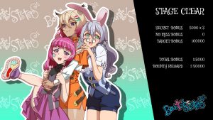Certain large enemies will also drop money canisters. In a nod to TwinBee’s bell system, you repeatedly shoot these to cycle through currency values, aiming for the highest payout before they reset in value or fall off the screen. Money is separate from score and can be used to purchase additional subweapons before starting a new game. Each girl only starts with one subweapon, but three more can be unlocked through multiple plays. Funny specializes in various bubble attacks, Betty has bullets that shoot in different directions, and Dot attacks with different types of blades.
